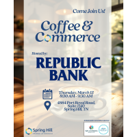 Connect with us for Coffee & Commerce, our monthly morning networking event designed to help local business professionals build relationships, exchange ideas, and stay connected with the Spring Hill community.