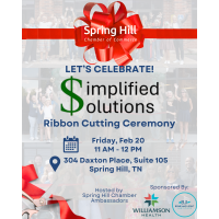 The Spring Hill Chamber is excited to host an official ribbon cutting for Simplified Solutions, a valued Chamber member dedicated to helping individuals and small business owners navigate the complex landscape of insurance and investments.