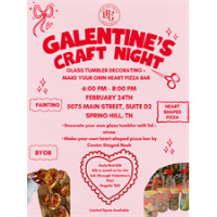 Celebrate Galentine’s Day with a glass tumbler craft and heart-shaped pizza bar at Love Rae Grace Boutique in Spring Hill, TN.