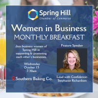 Join the Spring Hill Chamber for our Women in Business monthly breakfast on Wednesday, October 15, 2025, from 7:30 AM - 9:00 AM at The Southern Baking Co., 4847 Main Street Spring Hill, TN 37174.