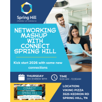 The Spring Hill Chamber of Commerce invites you to the December Coffee & Commerce Mixer on Thursday, December 11, 2025, at 8:30 AM at the Spring Hill Chamber of Commerce and Welcome Center! Join us at 5326 Main Street, Suite G in Spring Hill.