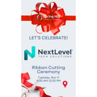 The Spring Hill Chamber invites you to a ribbon cutting ceremony celebrating NextLevel Tech Solutions on Tuesday, November 11, 2025, from 11:30 AM to 12:30 PM. Please join us at 5326 Main Street, Suite G in Spring Hill!