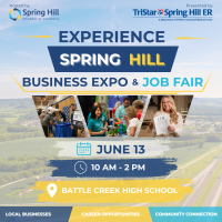The Spring Hill Chamber is thrilled to announce the return of Experience Spring Hill, The Event presented by TriStar Spring Hill ER on Saturday, June 13, 2026, at Battle Creek High School from 10 AM to 2 PM. Sign up for your booth today!
