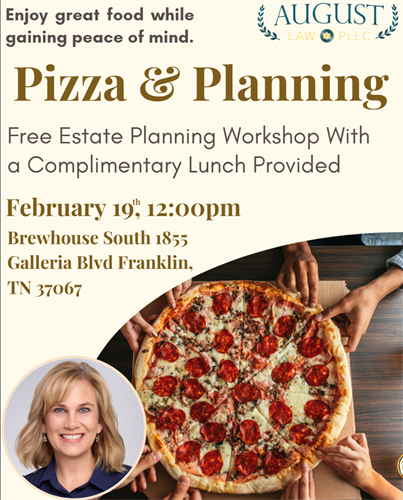 Name: August Law's Pizza & Planning FREE EVENTDate: February 19, 2026Time: 12:00 PM - 1:30 PM CSTWebsite: https://augustlawpllc.com/lunch/Event Description:What if you could demystify this entire process, cut through the legal jargon, and actually enjoy taking control of your family's future, all while sipping on a glass of something delightful?