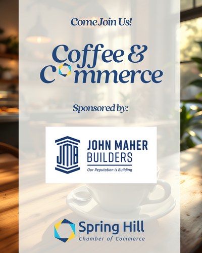 Name: Coffee & Commerce: JOHN MAHER BUILDERSDate: May 14, 2026Time: 8:30 AM - 9:30 AM CDTRegistration: Register NowEvent Description:Connect with us for Coffee & Commerce, our monthly morning networking event designed to help local business professionals build relationships, exchange ideas, and stay connected with the Spring Hill community.