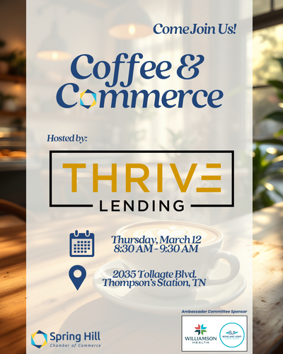 Connect with us for Coffee & Commerce, our monthly morning networking event designed to help local business professionals build relationships, exchange ideas, and stay connected with the Spring Hill community.