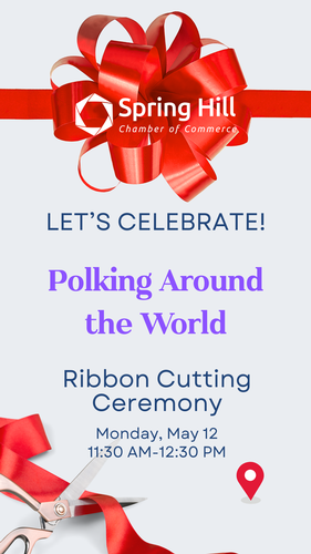 Name: Polking Around the World Ribbon Cutting CeremonyDate: May 12, 2025Time: 11:30 AM - 12:30 PM CDTRegistration: Sorry, public registration for this event has been closed.Event Description:The Spring Hill Chamber invites you to a ribbon cutting ceremony celebrating Polking Around the World on Monday, May 12, 2025 from 11:30 AM - 12:30 PM.