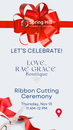 The Spring Hill Chamber invites you to a ribbon cutting ceremony celebrating Love, Rae Grace Boutique on Friday, October 17, 2025, from 3 PM to 4 PM.