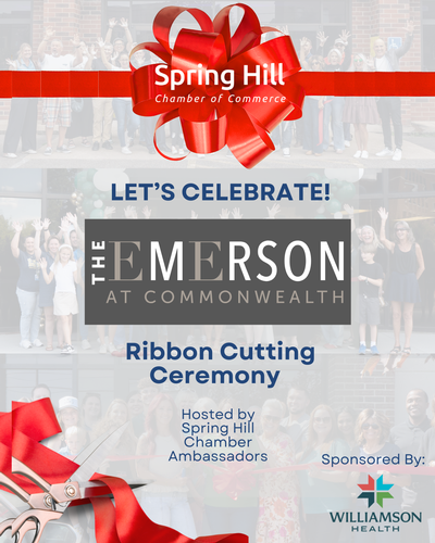 Name: The Emerson at Commonwealth Ribbon Cutting CeremonyDate: February 24, 2026Time: 11:30 AM - 12:30 PM CSTRegistration: Sorry, public registration for this event has been closed.Event Description:The Spring Hill Chamber is excited to celebrate the opening of The Emerson at Commonwealth with an official ribbon cutting!