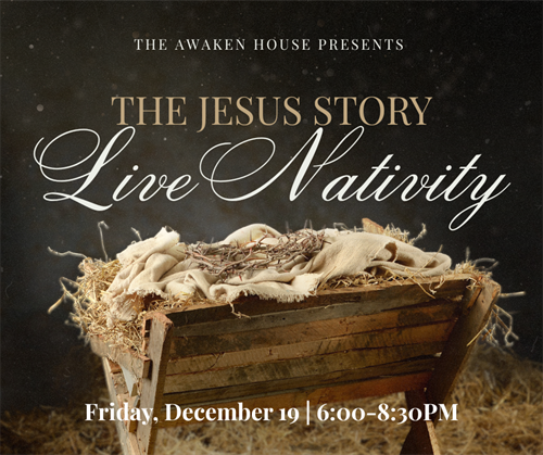 Name: The Jesus Story: Live Nativity & WorshipDate: December 19, 2025Time: 6:00 PM - 8:30 PM CSTEvent Description:Come experience the beauty of the Jesus story featuring a live nativity, worship, drinks & desserts, and ornament decorating for all ages!This family friendly event is for everyone! Cost is $10 per vehicle which includes "The Jesus Story" and Live Nativity.