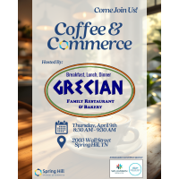 Connect with us for Coffee & Commerce, our monthly morning networking event designed to help local business professionals build relationships, exchange ideas, and stay connected with the Spring Hill community.