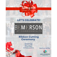The Spring Hill Chamber invites you to a ribbon cutting ceremony celebrating The Emerson at Commonwealth on Tuesday, February 24, 2026, from 11:30 AM to 12:30 PM. The Emerson at Commonwealth provides new one-, two-, and three-bedroom apartments with modern features such as all-electric kitchens, hardwood floors, walk-in closets, and in-home washers and dryers. Residents also enjoy private patios or balconies and year-round comfort with central air, ceiling fans, and electric fireplaces.