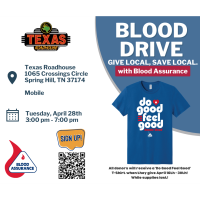 Blood Assurance will hold a Blood Drive in Spring Hill